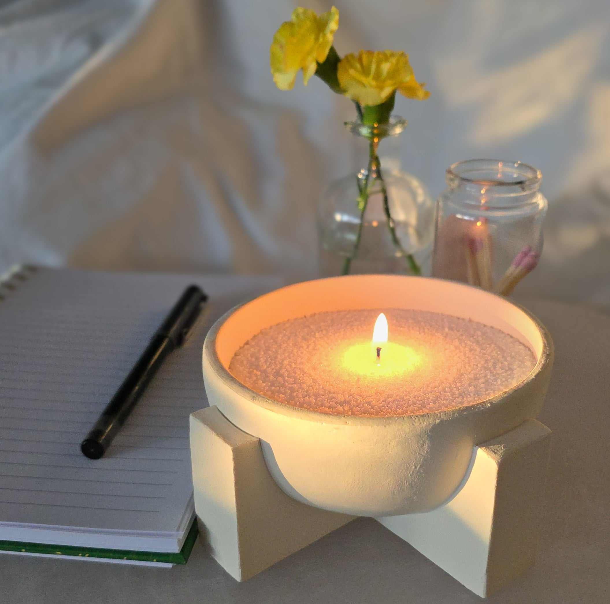 Our candles are intentionally unscented to remain natural and chemical-free. As a 'powder form', our candle is not intended to carry any fragrance.