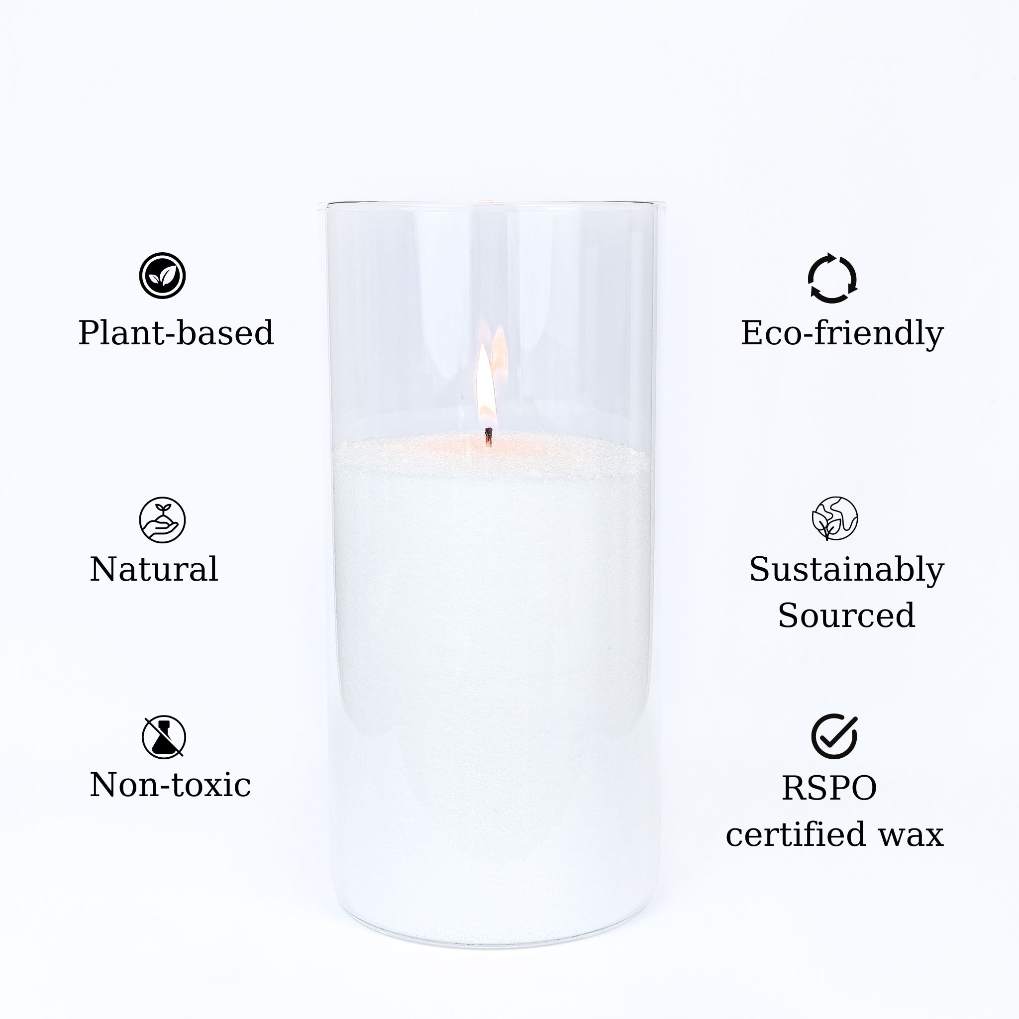 The fresh unburnt pearled wax can be refashioned in the same vessel to maintain that ever-fresh look, be placed back into the Elysius Pearled Candle box for storage or repoured in another vessel of your choice for a new look.